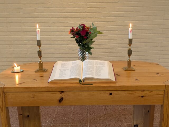 Vi samtalar, fikar och läser tillsammans. Den som vill tar med ett handarbete.