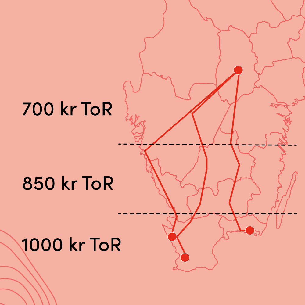 Pris från Skåne blir 1000 kr tur och retur. De något kortare rutterna ex. Falkenberg eller Växjö 850 kr och de ännu kortare rutterna ex. Mariestad eller Mjölby 700 kr. Alla priser per person.