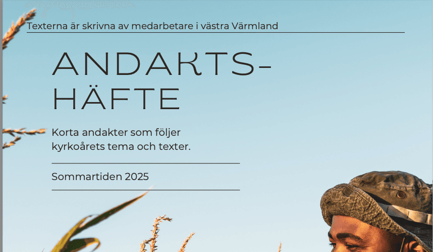 Här finns ett antal andakter att beröras av, reflektera kring och kanske möta Gud genom. Andaktshäftet är kopplat till kyrkoåret och är framtaget av medarbetarna i västra Värmland.