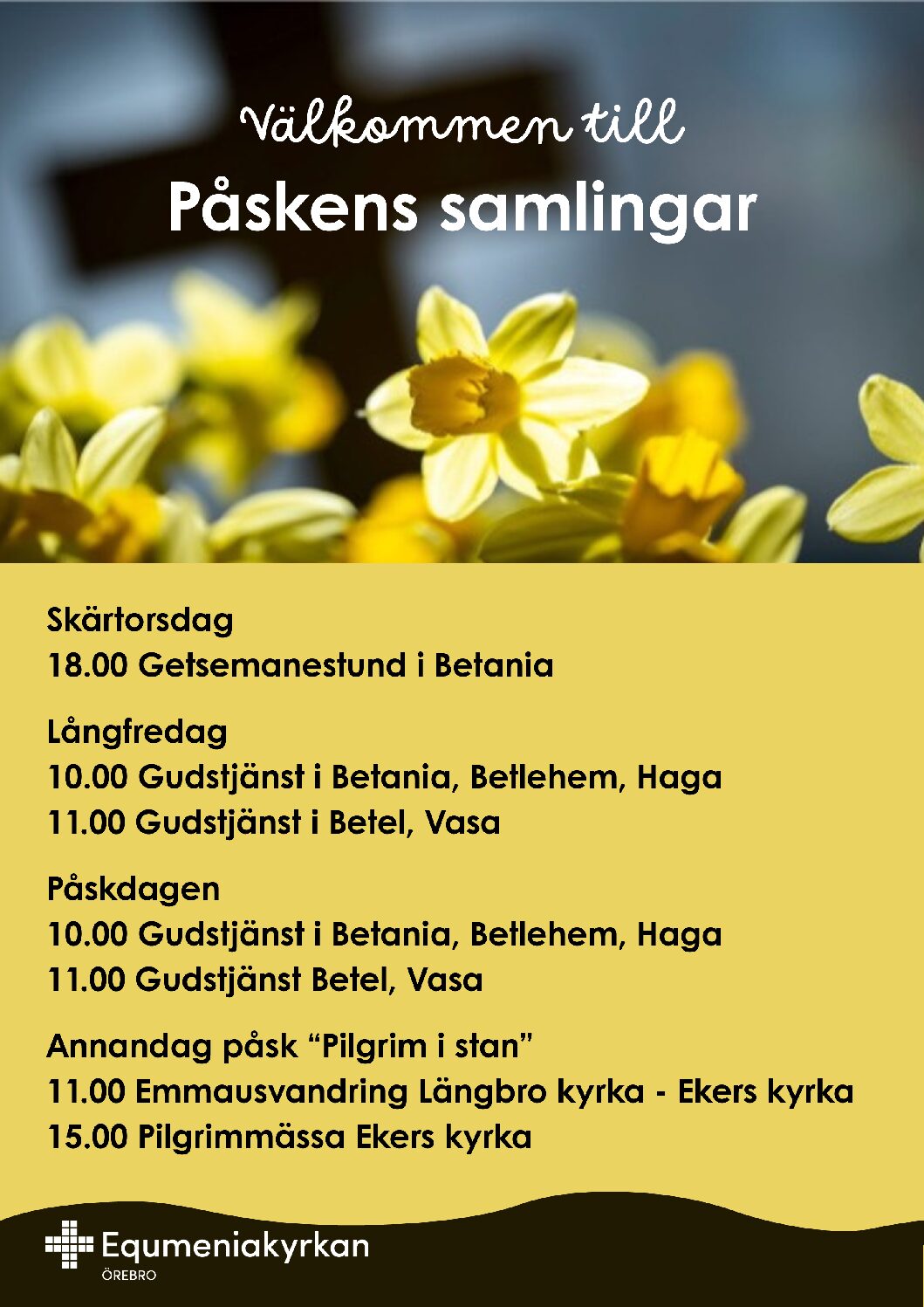Nyhet Påsk i Equmeniakyrkan Örebro Publicerat 24 mars, 2026 Påsken EKÖ 2026 Affisch (1)Ladda ner Dela