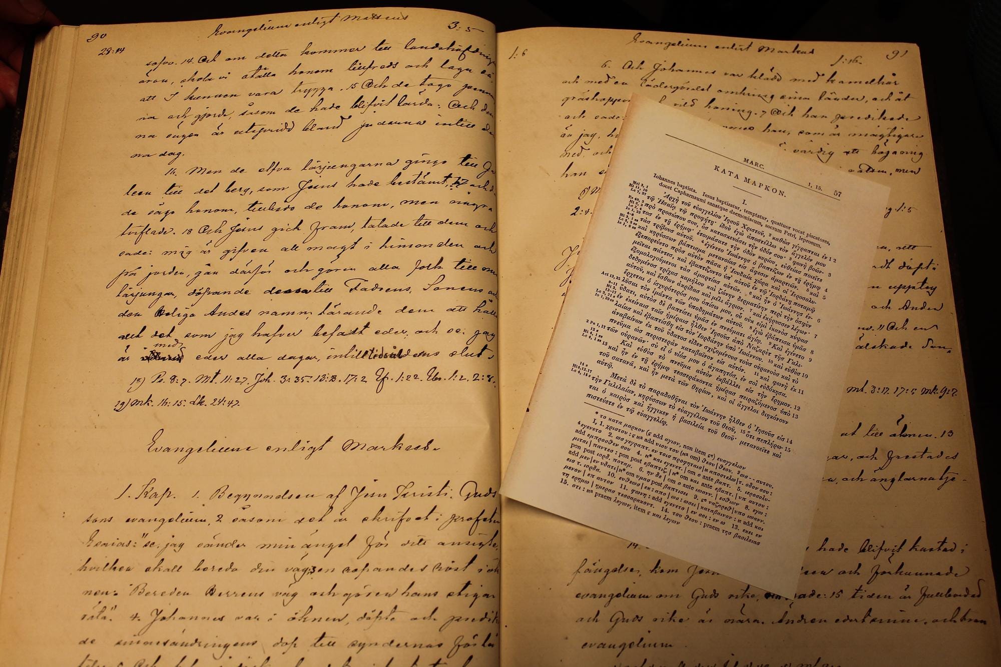 Bland biblarna gjordes ett ”fynd” för en tid sedan. Vi hittade en inbunden handskriven översättning av Nya Testamentet. På försättsbladet har översättaren noga angett sin förlaga. Han har utgått från Konstantin von Tischendorfs utgåva av det på grekiska skrivna Nya Testamentet i den åttonde upplagan.