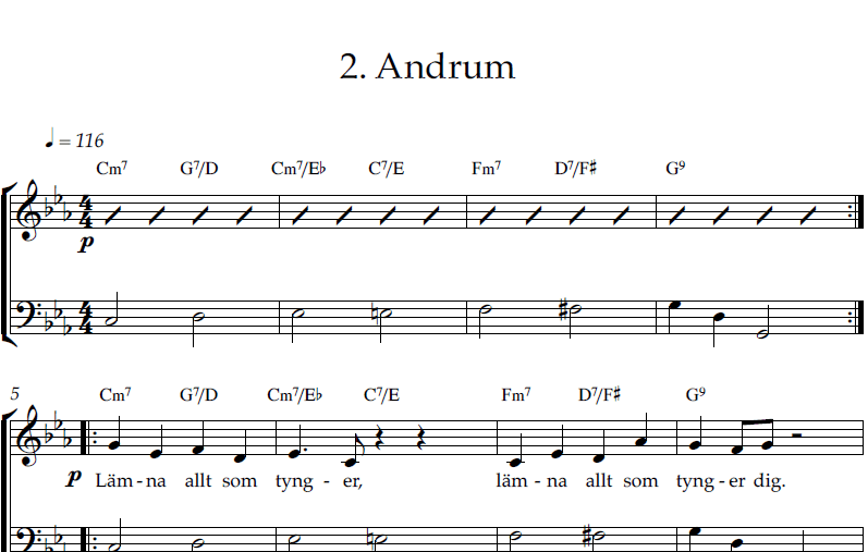 Andrum – andra sången i jazzmässan I din härlighet av Kitte Ström. SATB.