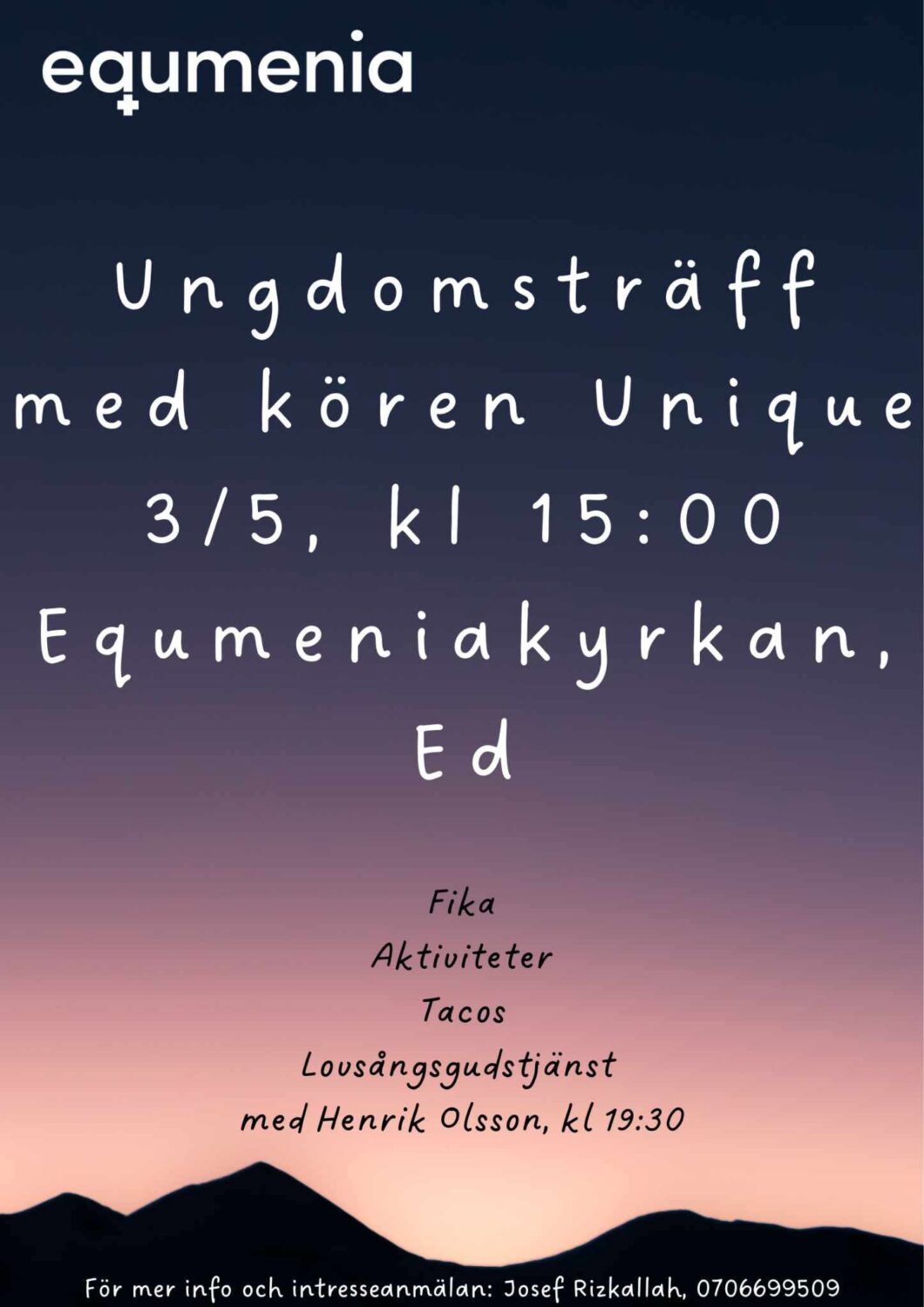11:45— Gudstjänst med Gospelkören Unique och pastor Henrik Olsson.