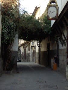 Vi går gata upp och gata ner. De flesta gatorna är smala och husens andra våning lutar starkt in mot gatan. Ola och Emanuel hjälper mig att komma ihåg vad som hände i Damaskus för länge sedan. Paulus. Ananias. Vi besöker det som man tror var Ananias hus. Vi besöker den plats där Ananias mötte Paulus och gav honom synen tillbaka. Vi går på den raka gatan.