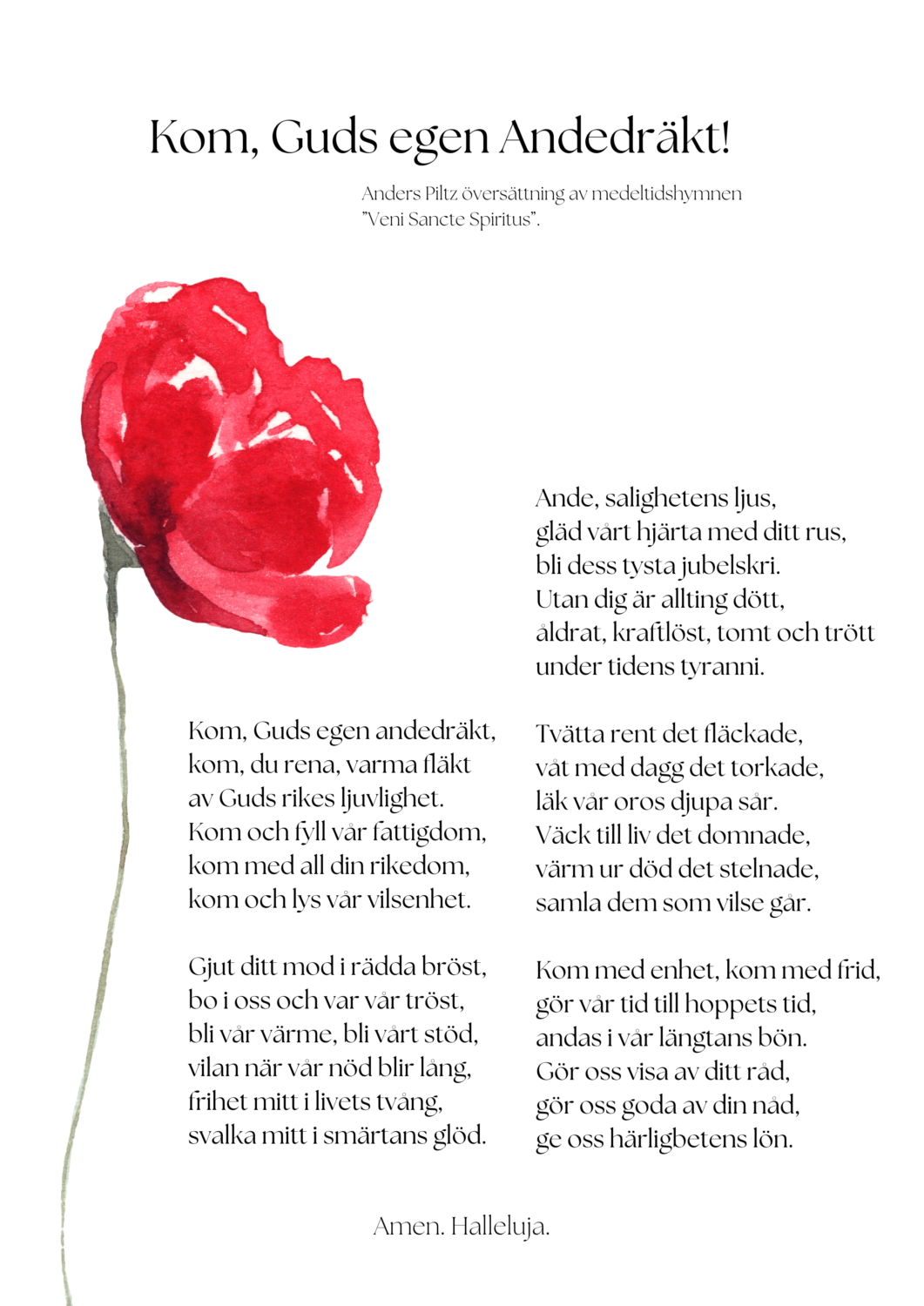 Jag sträcker mina händer mot dig, öppnar mig som törstig jord. Låt mig var morgon möta din trofasthet, ty jag förtröstar på dig. Visa mig den väg jag skall gå, jag sätter mitt hopp till dig.