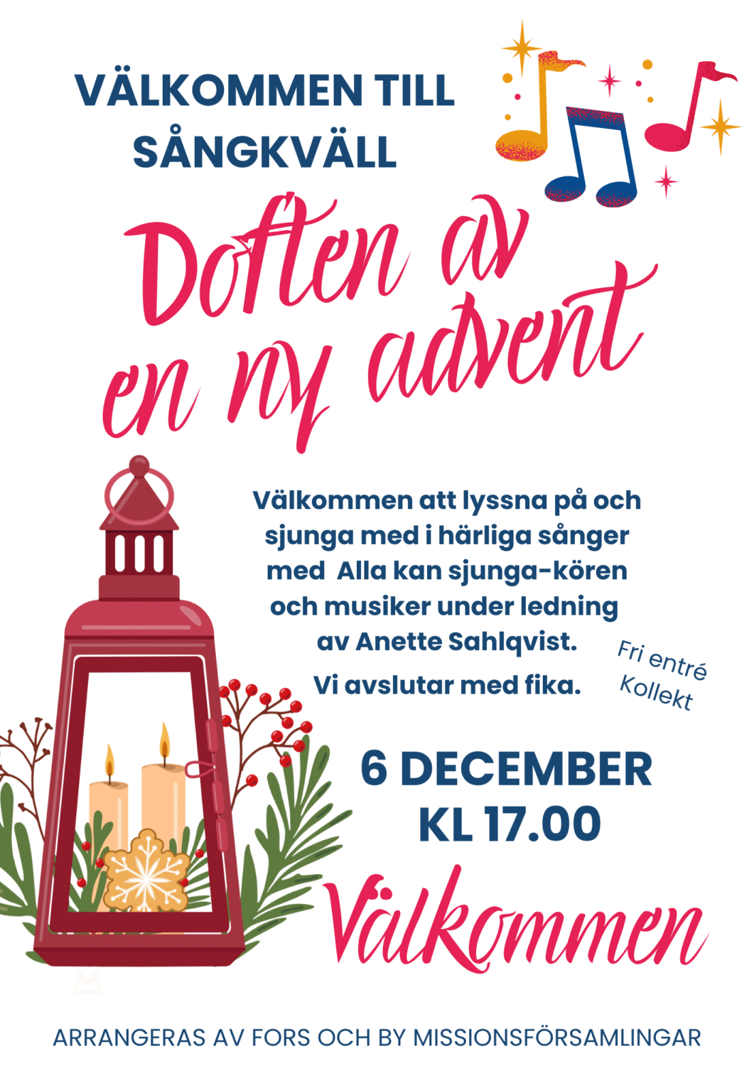 Välkommen den 6 december kl 17.00 att lyssna på och sjunga med i härliga sånger med Alla kan sjunga-kören och musiker under ledning av Anette Sahlqvist.