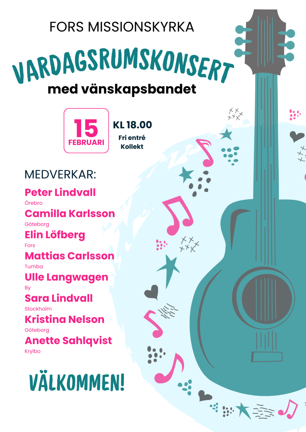 Vardagsrumskonsert med Vänskapsbandet lördagen den 15:e februari kl 18