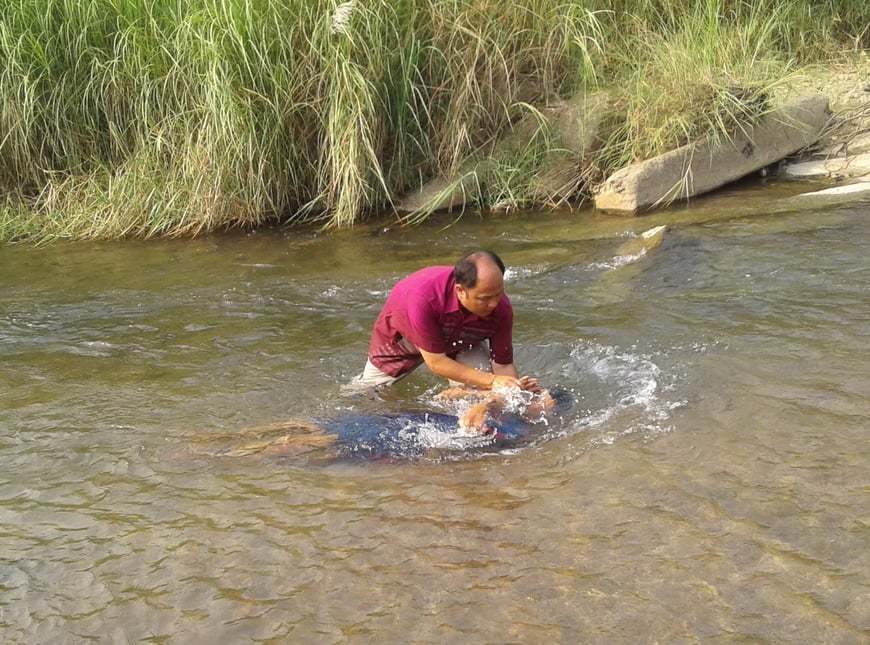 Byn Södra Ongdan, ligger en knapp mil från Sop Moey, i norra Thailand. Församlingen i Sop Moey har besökt byn i två år. Den ligger i ett område där det inte finns några kyrkor. På påskdagen var det dags, 32 personer från byn blev döpta nere i floden som rinner genom Sop Moey.