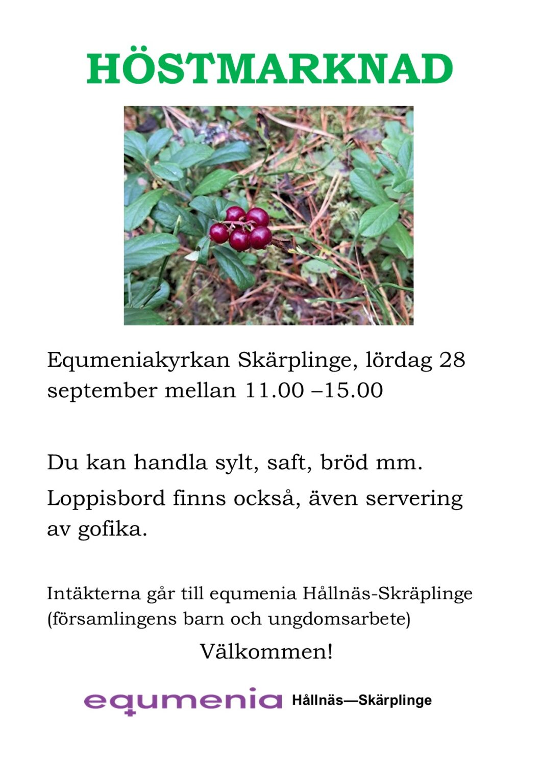 Nyhet Höstmarknad Publicerat 24 september, 2024 equmenia Hållnäs-Skärplinge arrangerar sin höstmarknad lördag 28/9 mellan 11.00-15.00 i Equmeniakyrkan Skärplinge. Välkommen Dela