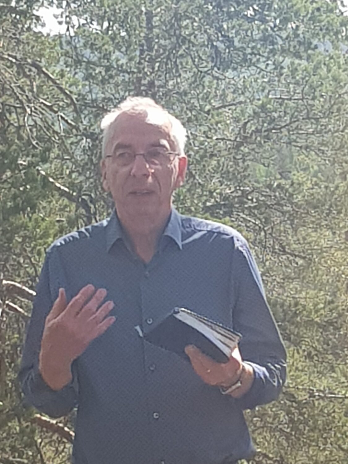 Väl framme på Björnlandskullen tog vi fram våra fikakorgar innan själva gökottan kunde börja. Anders Nyström var mötesledare. I bibeln talas om många berg.