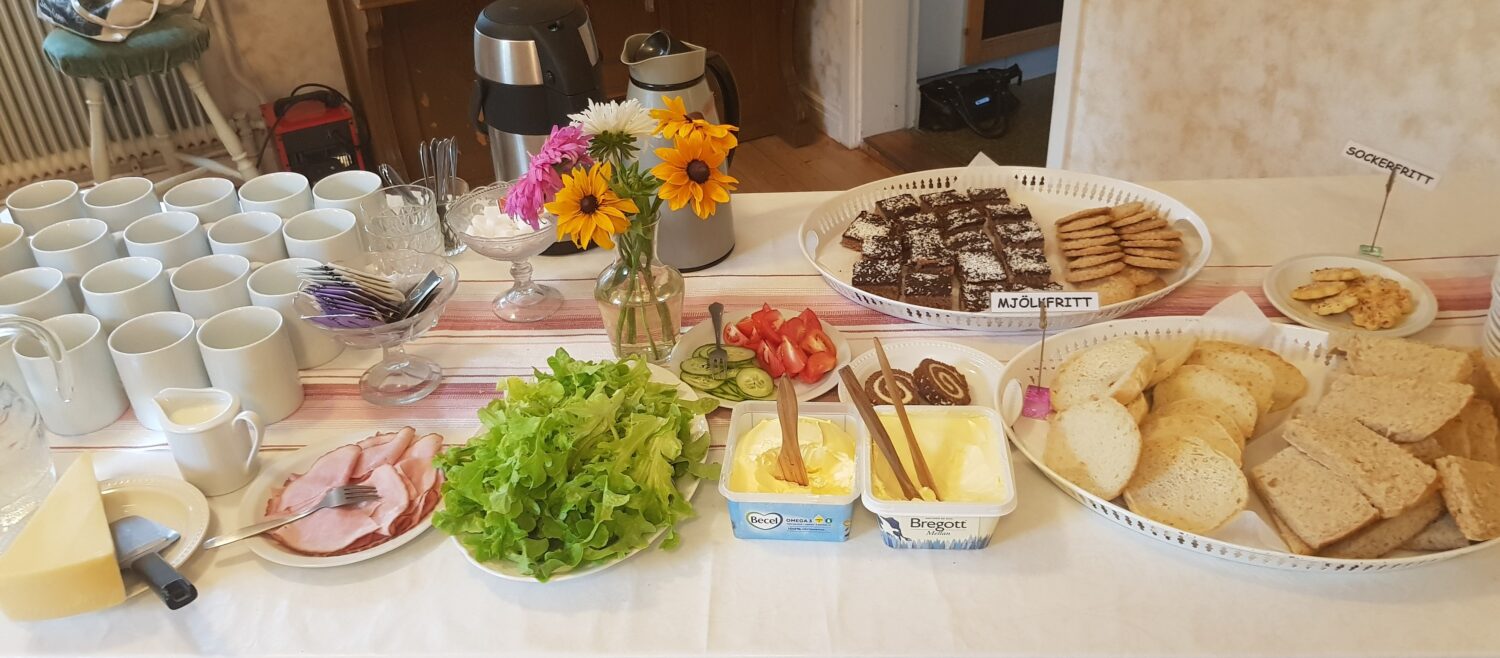 Peterson-Bergers Sommarsång fick inleda sånggudstjänsten i augusti månad. Det var en av kvällens gäster, Henrik Mattsson som spelade detta musikstycke. Cecilia läste en sommardikt ”Sommarängens lovsång” skriven av Karin Hartler. Hon läste även från Psaltaren 89:12-18. Därefter sjöngs psalmen ”Brist ut min själ i lovsångsljud”. Henrik och hans fru Monica Lundberg som är bosatta i Uppsala men är uppe och hälsar på i Abborrfors var kvällens gäster.