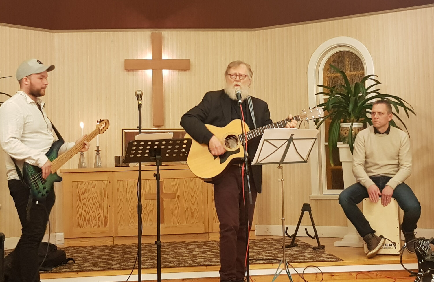 På måndagskvällen samlades en skara människor i alla åldrar. Det var Bert och Marianne Lundström som var inbjudare och hon hälsade alla välkommen. Psalmen ”Löftena kunna ej svika” sjöngs till inledning. Marianne läste från Jeremia 29:11-13. Sedan sjöngs psalmen ”Vilken vän vi ha i Jesus”. Kvällens gäster var Kjell Tegnér som hade med sig två av sina vänner, Erik Eriksson och Daniel Nordkvist.