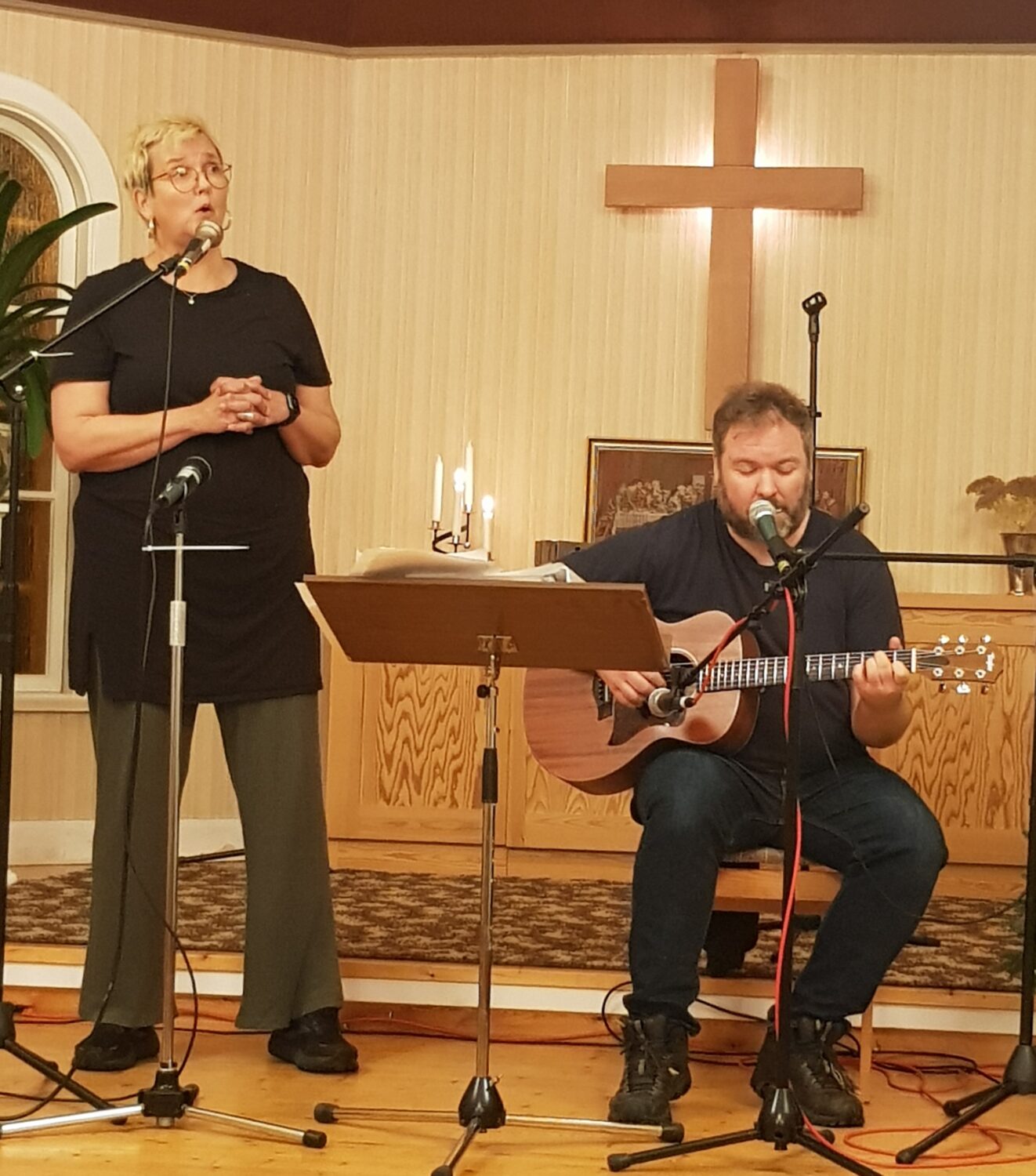 Ann och Olle sjöng två sånger; ”Christmas day” och Hallelujah. Därefter sjöngs psalmen ”Bereden väg för Herran”. Vi bad för böneämnena i böneskålen och en del andra böneämnen. Ann och Olle sjöng deras sista sånger ”Viskar en bön” och ”I denna mörka vintertid”. Gudstjänsten avslutades med Välsignelsen och psalmen ”Det susar genom livets strid”. Till fikat serverades hembakt tunnbröd, julskinka, saffransbullar och kaka.