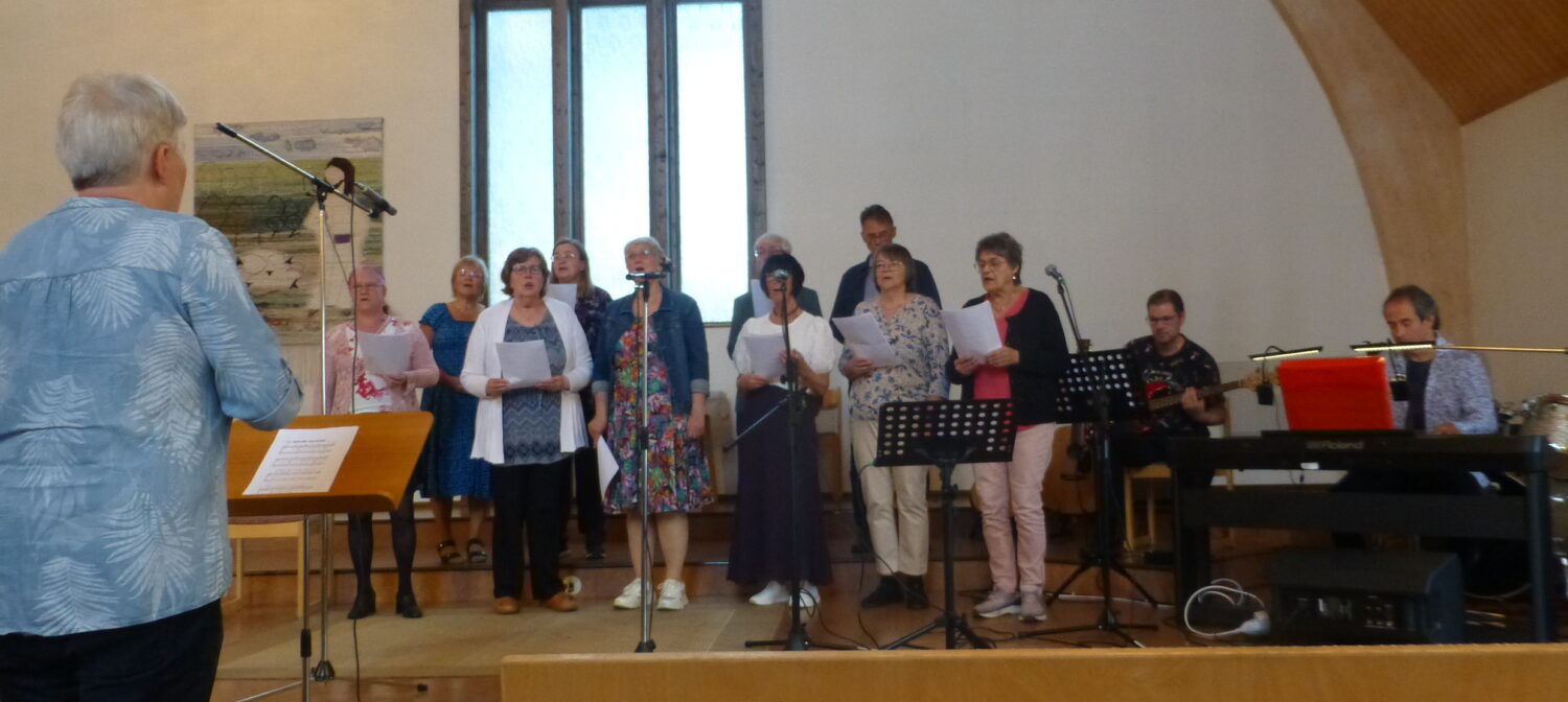 Efter predikan sjöng ekumeniska kören ”Herre låt ditt vårregn falla” och ”Helige Ande, kom oss nära”. Tillfälle gavs till förbön och Mikael delade Herrens välsignelse. Pingstkören avslutade med sången ”Det brinner en eld”. Gemenskapen fortsatte runt fikaborden med bredda smörgåsar och kakor.