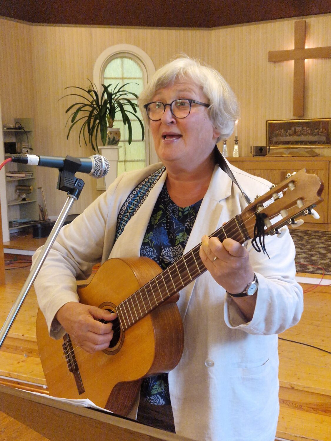 På onsdagskvällen samlades en skara till ekumenisk gudstjänst i missionskyrkan. Cecilia Strömberg som var mötesledare hälsade alla välkomna. Gudstjänsten inleddes med psalmen ”Jag vill ge dig o Herre min lovsång”. Margareta Sandman var dagens solist och sjöng ”Du som känner all min längtan” och ”Gud är trofast”.