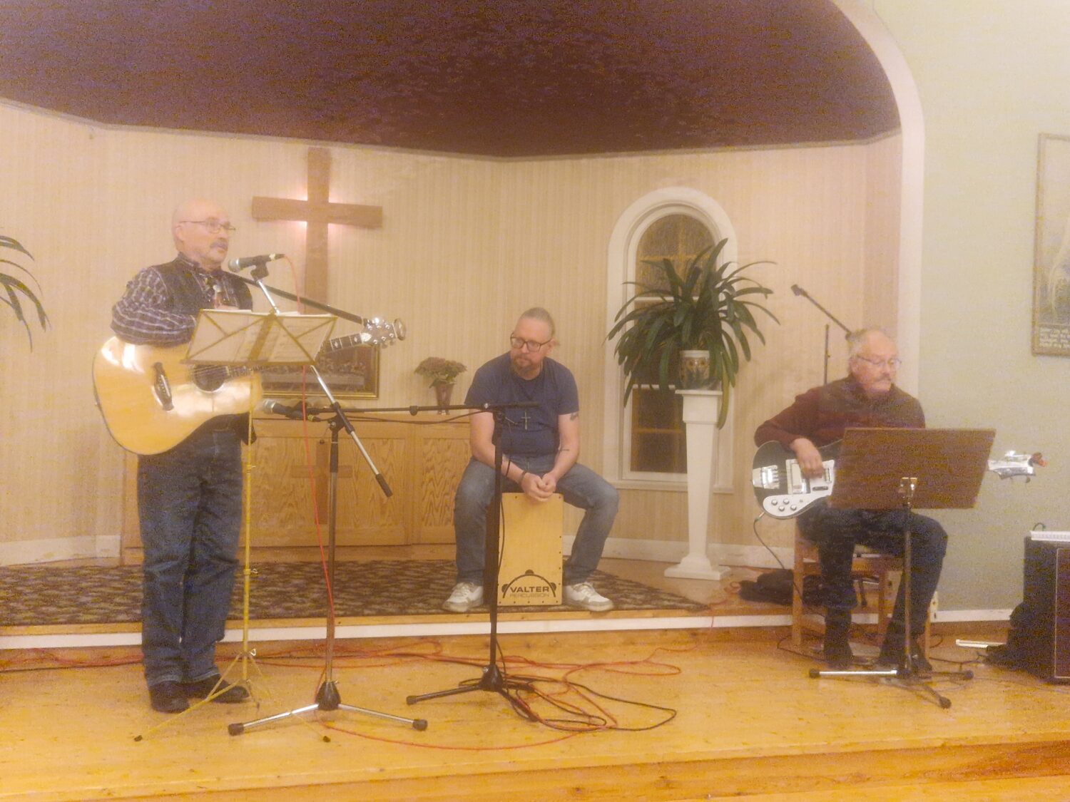Eiron Flogér var inbjudare till höstens första missionsafton. Den inleddes med en psalm som skrevs av Carl Boberg i närheten av hans hemtrakter i Småland. Vi sjöng vers 1 samt 4-6 av psalmen ”O store Gud”. Cecilia läste från Kolosserbrevet 3:16-17, en text som återfinns i kyrkoåret på tacksägelsedagen. Hon poängterade att vi har mycket att vara tacksamma för, mat, våra hem, fred i vårt land. Vi är också tacksamma att kyrkan fått tjänligt vatten igen efter att vi borrat efter nytt vatten. Det frös i januari och hade inte kommit tillbaka. Sedan sjöngs psalmen ”Jag vill ge dig o Herre min lovsång”. Kvällens gäster var LillMats Holmberg. Han hade med sig Christer Edström på elbas och Markus Berg på cajon.