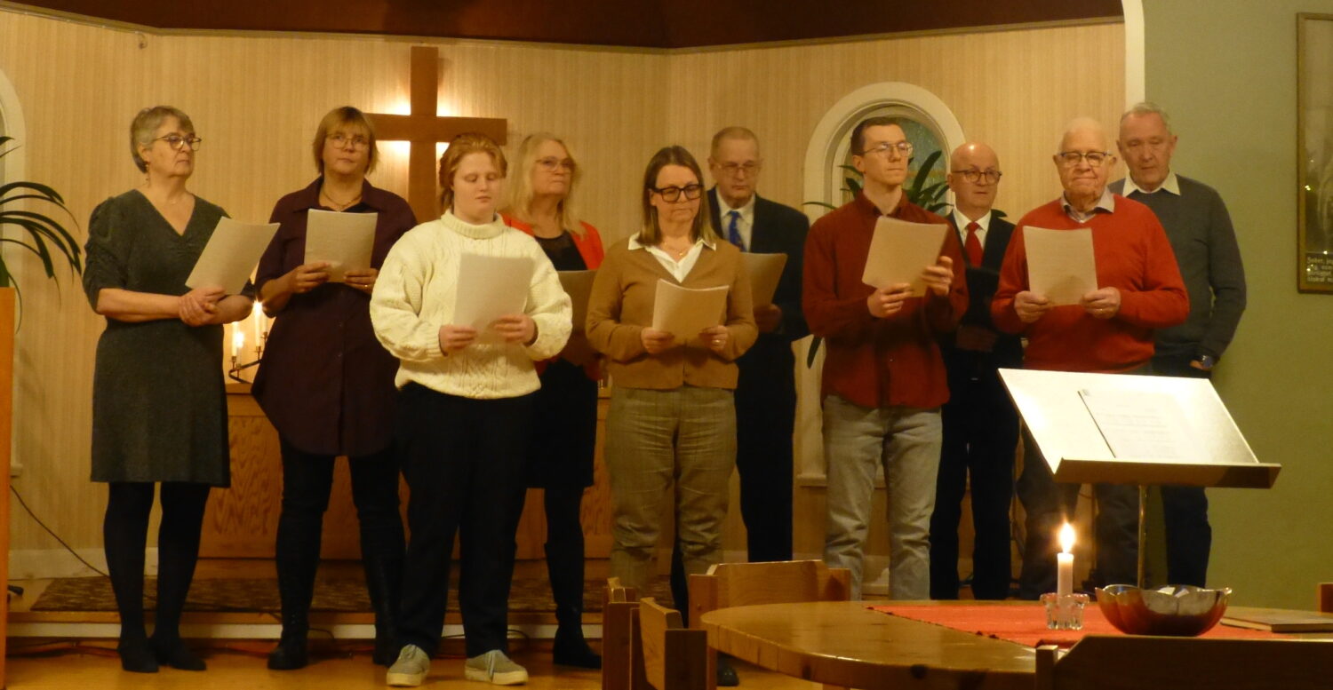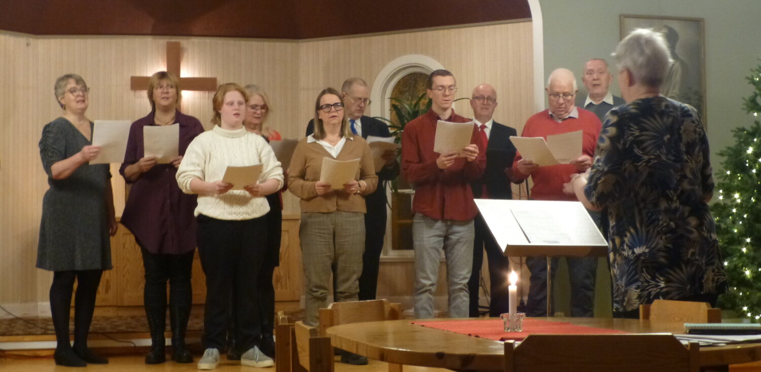 Han tänkte på tid när vi sjöng första psalmen, texten av J O Wallin 1813 och Martin Luther musiken 1539. Åren går och vi blir äldre. Det ger oss perspektiv på tiden, på de som gått före. Han berättade om julspelet i Vännäs missionskyrka som i år hade 30-årsjubileum. I år var Thomas läkaren Lukas. Hans barnbarn som sitter nere i publiken utbrister att ”Det är ju morfar”! Han läste från Matteus 1:18-25. Vi sitter här till gudstjänst i Hörnsjö för att ett barn har fötts drygt 2020 år sedan. Ett förunderligt barn med smak av något gudomligt och mänskligt. Ett barn som vi kan följa genom Nya testamentet. Det är mycket utsatthet och prövningar som barnet möter under sin livsvandring. Han föds av en trettonåring, hon blir utvald, tillfrågad och fick säga sitt ja. Hennes namn betyder den älskade, den bedrövade. I den tid vi lever i kan vi ibland känna oss bedrövade över vissa beslut som vårt land tar idag. Vi kan bli bedrövad när de visar bilder från flyktingläger i Gaza, det har regnat och de har bara något skynke att gå in under, det blir minusgrader och barnen dör. Varför gör ingen något? Ibland kan det vara blockerat så det inte går att hjälpa. Jesaja förutsade barnets födelse 650 år innan Jesus föddes. Han säger det som att det redan skett, Den unga kvinnan är havande och hon ska ge honom namnet Immanuel, Gud med oss. Det är det som är vår situation, vår sorg, vår glädje, prövningar osv. Gud är med oss. El på hebreiska är Guds namn. En podd som heter sökarna, har intervjuat statsministerns fru som är präst, kända unga musiker som har kommit till tro. Första frågan är alltid: vem var Gud för dig när du var ett litet barn. De berättar och berättar. Ett litet barn tror ofta att Gud finns. Det är så pass öppet. En liten kille sprang framför kistan och när begravningen skulle börja säger barnet, -Nu morfar får du vara tyst för nu ska pastorn prata. För ett barn kan det vara så att den som dött är inte död utan den har gått vidare till det eviga livet. Det är inte slutet, det bästa ligger alltid framför. Att få ha hoppet med sig också i det som är vår vardag. Thomas frälsningsupplevelse fick han när han var 27 år. Tidigare var kyrkan inget alternativ. I Abrahamsbergskyrkan hade de julspel, de sjöng ”Förunderligt och märkligt”, det var som ett hemlighetsskimmer över något som var väldigt viktigt, en fördold hemlighet utan att de förstod det. Det var varmt, innerligt och högtidligt. Den första versen har följt Thomas som en ledstjärna även om familjen inte var aktiva i kyrkan. ”Förunderligt och märkligt, omöjligt att förstå men dock så ljust och verkligt och ljuvt att tänka på. inunder öppen himmel på bädd av strå och blad, du finner Herre Jesus, din första vilostad”. Psalmer och sånger 490. Människor har i alla tider upplevt utsatthet. I och med att Gud blev en människa som du och jag, att alltihopa plötsligt är trovärdigt. Han delade vår utsatthet redan som nyfödd, det fanns ingen plats för honom i Betlehem när han skulle födas. Han föddes i ett stall, bäddades ner i en krubba där kreaturen fick sin mat. Thomas har ingen bild av att det skulle vara ljuvliga dofter utan en massa flugor och djurdynga. Han var utsatt men det var där han föddes. Det var till den platsen som herdar, kungar och vetenskapsmän kom och lägger ner sina dyrbara gåvor. Gud, alltings ursprung, så blev hans första dagar. Redan på den här tiden fanns härskare som ville vara allsmäktiga och lydde man inte honom så tog man bort dem. Josef och Maria fick fly för att Jesus liv var i fara. De fick fara till Egypten. Jesu första tid på jorden var i stallet, i krubban och som flykting i främmande land under sina första år. Det är en Gud som vi sätter vårt hopp och förtröstan på. Då tänker Thomas idag på Putin. I landets krig mot Ukraina har 34000 barn tillfångatagits, förts till Ryssland som krigsfångar, placerats i 21 geografiska platser i Ryssland. Tonårsflickor tillverkar drönare som används i kriget mot deras hemland, tonårspojkar tränas till soldater och sätts in i kriget mot sina egna föräldrar och släktingar. Omvärlden konstaterar att ett folkmord pågår i Ukraina. Det är inte så kul att berätta på julottegudstjänsten men det är den värld vi lever i. Gud är trovärdig, han har inte sparat på något för att vi ska förstå att det kan vara besvärligt att vara människa. Han överger ingen egentligen men det finns ett slags eget ansvar för vad man får för sig att man plötsligt ska göra. Då kom den här profetian i Jesaja 9:6-7. Det löftet kommer han att stå för. När dagen är inne, det går inte längre, då kommer han tillbaka. Vi behöver inte bekymra oss då för Gud är kärlek. Han älskar alla människor. Det sägs att det var bättre förr. Men barndödligheten har minskat under 26 år med 5 miljoner. Trots det 2024 dör 4,9 miljoner på grund av fattigdom, brist på resurser och vatten. Den här dagen dör 13424 barn. Hälften av de barnen dör innan de fyllt 1 månad. Idag är frälsningens dag. Det grundar sig på Guds existens som skapare, frälsare och livgivare. Det är Gud vi får tacka för att vi finns, det är Gud som föddes som en människa, det är Gud som öppnar sig personligen för oss. Den gåvan är given genom stor utsatthet, hans korsfästelse och uppståndelse. Vad vill Gud säga oss idag? Han älskar oss därför att han själv varit människa som vi. Den kärleken är större än vi kan omfatta och förstå även i den här brustna världen.Han älskar oss utan vår prestation, bara därför att vi finns och är en människa. Det är evangeliets kärna. Namnet Jesus betyder Gud räddar. När Jesus skulle bli arresterad, misshandlad och korsfäst. Då drar han upp skynket och säger ”Jag är vägen, sanningen och livet”. ”Jag är” är ett namn på Gud. Han är sann Gud och