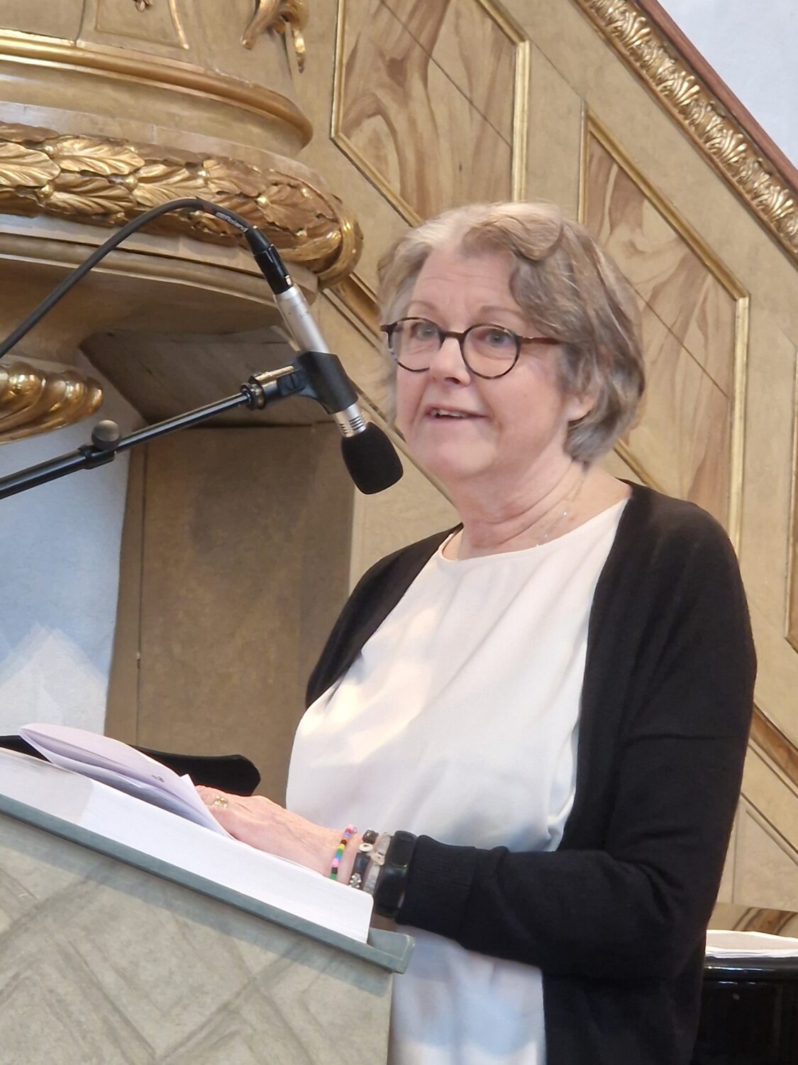Därefter läste hon episteltexten från Filipperbrevet 12-18. Psalmen ”Öppna mig för din kärlek” sjöngs innan helgens talare Marie-Louise Nilsson fick ordet.