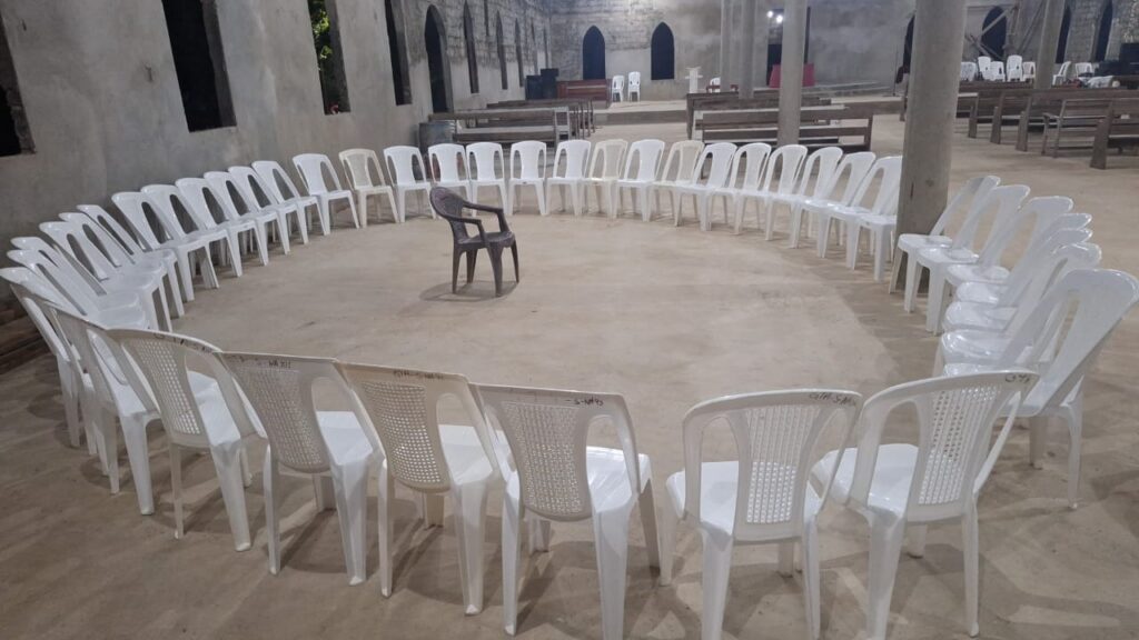 En tom stol i mitten av cirkel med många stolar – det är början på något nytt i en församling i Nicaragua.