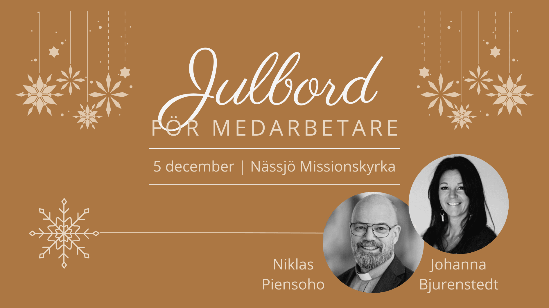 Välkommen på julbord i region Syd! Du som är medarbetare bjuds in att mötas i Falkvikskyrkan i Sölvesborg. Program för dagen 10:00 Drop-in fika 10:30 Inledning och andakt 11:00 Eleonore Gustafsson om: Vanor som hjälper oss i tjänsten 12:00 Pelle Åberg om: Livet i Falkvikskyrkan 12:45 Jullunch, underhållning och gemenskap 15:30 Tack för idag, vi […]