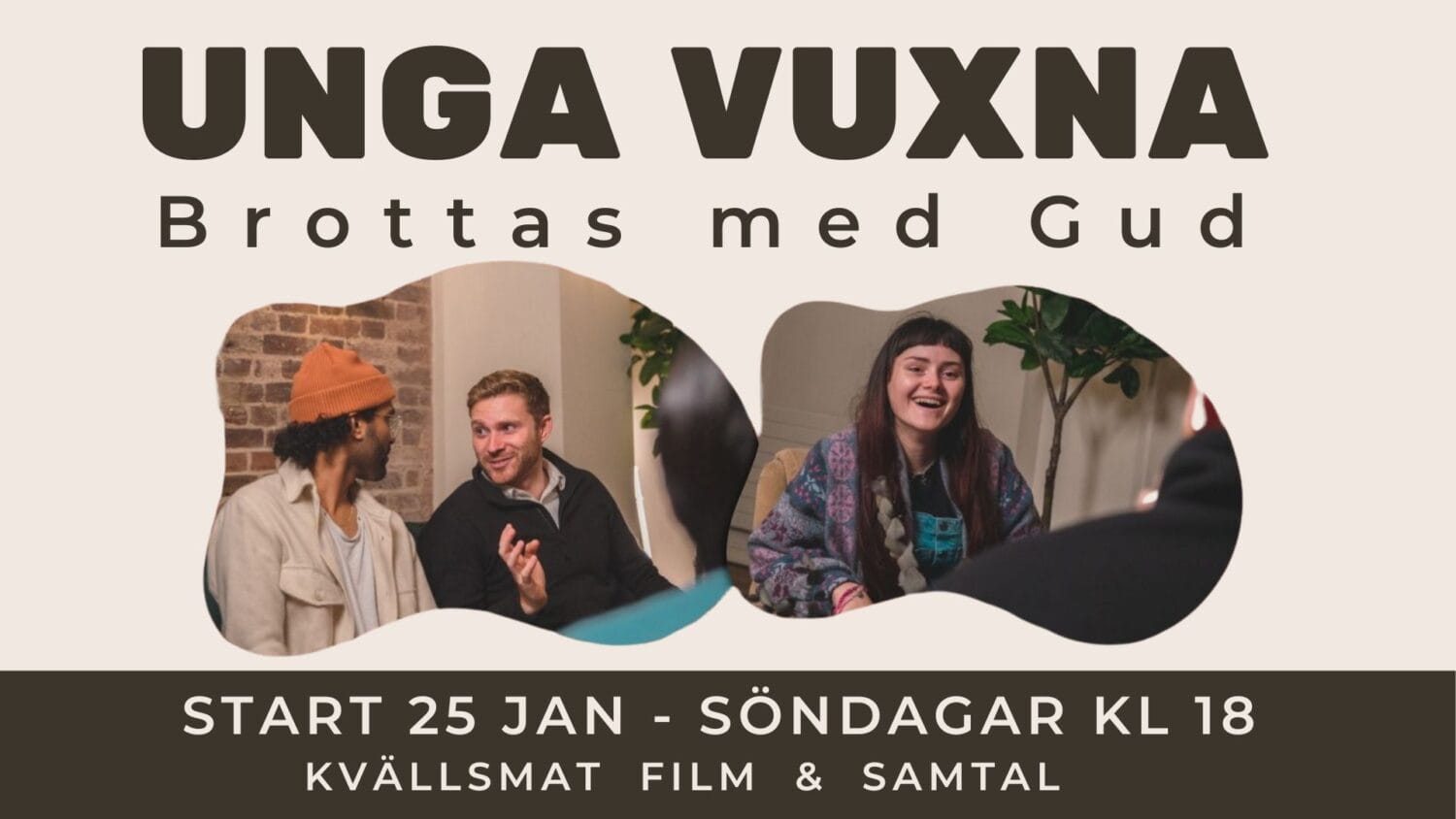 För dig som är 18-29 år. Vi möts fem gånger under våren för att äta kvällsmat, se en introduktionsfilm och samtala om livet och kristen tro.