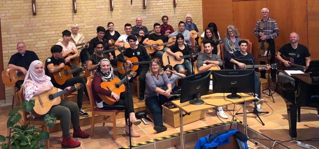 I helgen som gick var det regionfest i Trollhättans Missionskyrka. Omkring 200 personer från församlingar och equmeniaföreningar i regionen var samlade till bl.a. gudstjänst, seminarier, gemenskap, stämma och inspiration över allt det goda som händer i vår kyrka. Bl.a. medverkade Lyckans gitarrorkester från Smögen som till större delen består av asylsökande ungdomar från främst Syrien och Afghanistan. Och de spred verkligen lycka omkring sig. Klicka på länken så får ni lyssna på dem.