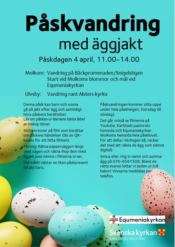 I år blir det en annorlunda påsk då vi inte kan ha de traditionella möten och sammankomster som vi brukar ha under påsken. På påskdagen kommer vi tillsammans med Svenska kyrkan att ha en påskvandring med äggjakt .