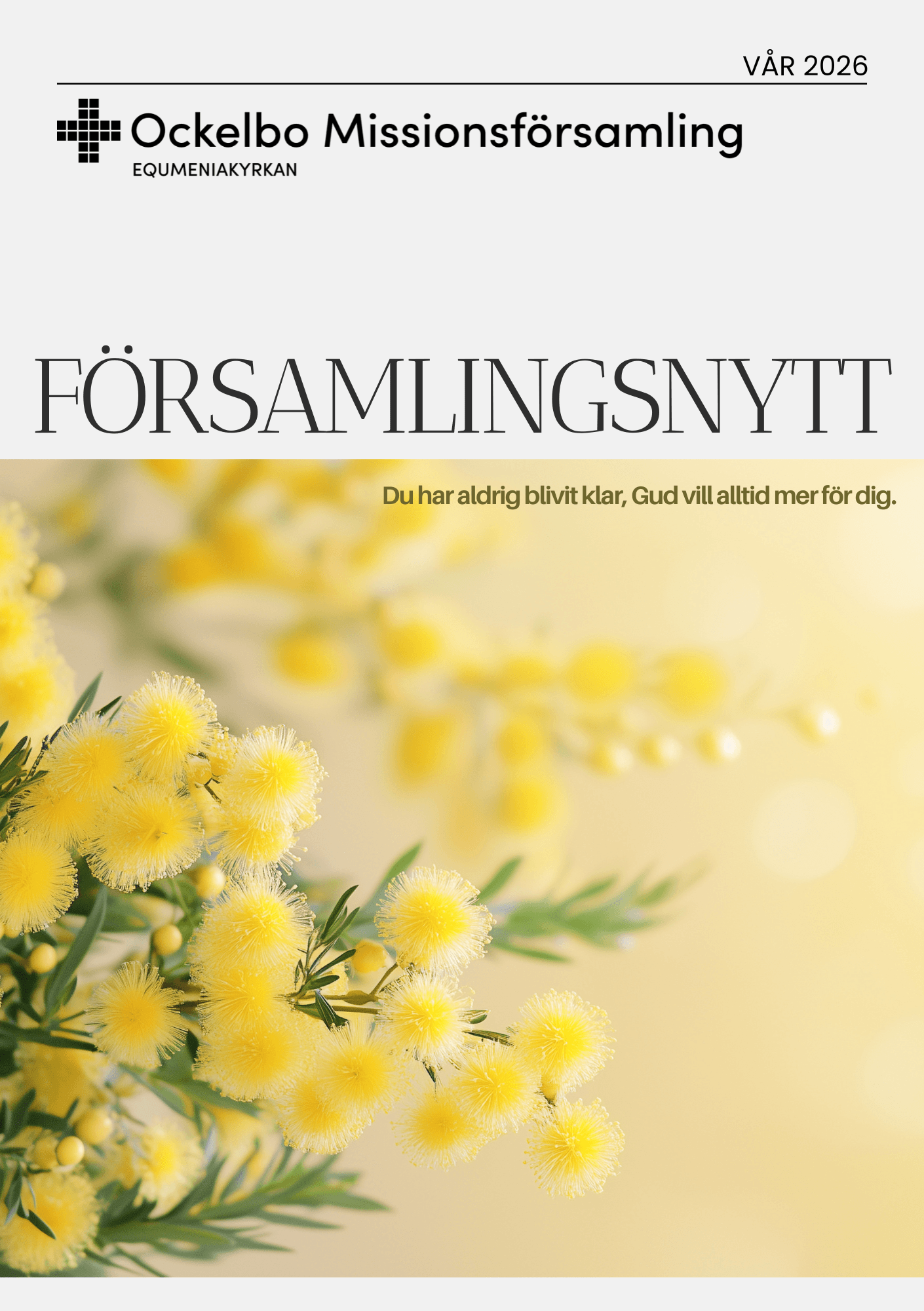 Vår tidning Församlingsnytt utkommer fyra gånger per år och innehåller allt som är aktuellt i församlingen, likväl intervjuer med någon medlem och en hälsning från någon av pastorerna.