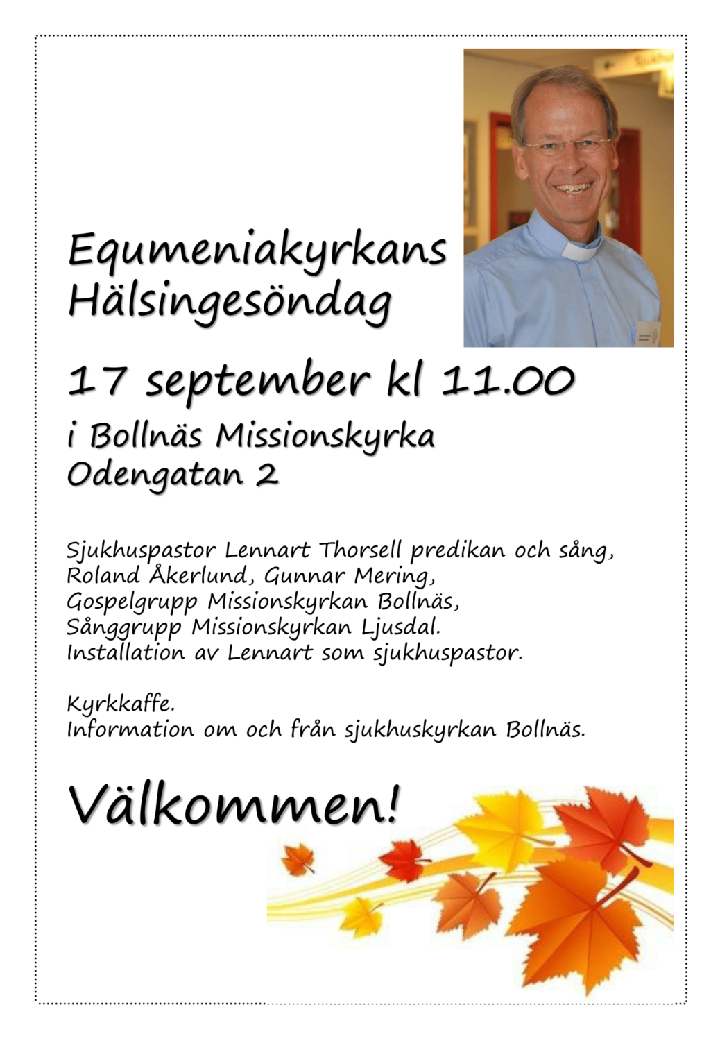 Detta evenemang har redan ägt rum. 17 september, 2017 11:00 - 12:00 Equmeniakyrkans Hälsingesöndag Equmeniakyrkans Hälsingesöndag. Lennart Thorsell m.fl. Lägg till i kalender Google Kalender iCalendar Outlook 365 Outlook Live Dela