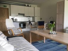 40m2 fördelade på två rum (23 och 12m2) och toalett med dusch. I det stora rummet finns matplats och välutrustat pentry utöver 2-3 sängplatser. I lilla rummet finns 1-2 sängplatser. Pris: 6 500 kr/vecka.