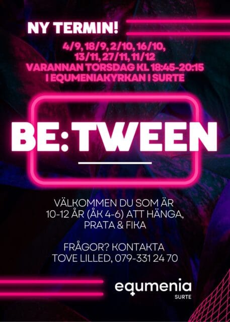 Välkommen du som är 10-12 år gammal för häng, aktiviteter, andakt och fika. Ingen föranmälan krävs.