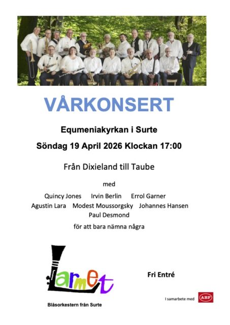 19 apr 17:00 - 18:00 Vårkonsert med blåsorkestern Larmet Välkommen att lyssna på blåsorkesterns Larmet kl 17:00 i kyrksalen. Fri entré! Lägg till i kalender Google Kalender iCalendar Outlook 365 Outlook Live Dela