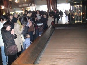 De kastade även pengar i en kista och klappade händerna för att frambringa välsignelse (ovan höger). Den japanska traditionen består av en salig blandning. Nu håller de på att inkludera en del kristna riter i sin tradition. Det börjar nämligen bli mer och mer populärt att gifta sig kristet istället för shintoistiskt och begravas kristet istället för buddistiskt (för det är billigare). I samtalet med baptistledarna sa det att detta kanske skulle kunna bli en väg att presentera evangeliet för de annars mycket skeptiska japanerna.