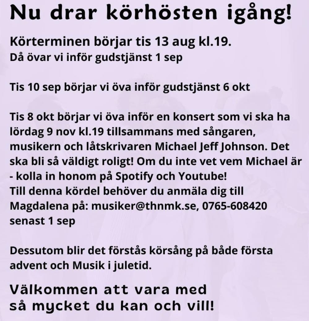 Körprojekt Vid frågor kontakta Magdalena Ahlberg Larsson, församlingsmusiker.0765-608420musiker@thnmk.se