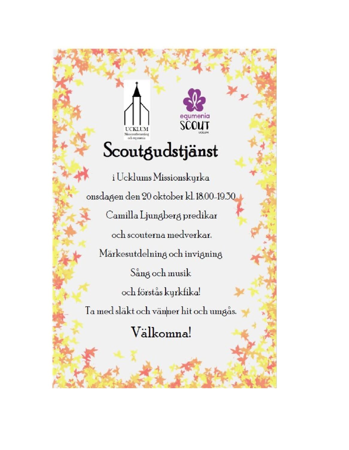 Scoutgudstjänst onsdag 2021-10-20 kl 18:00