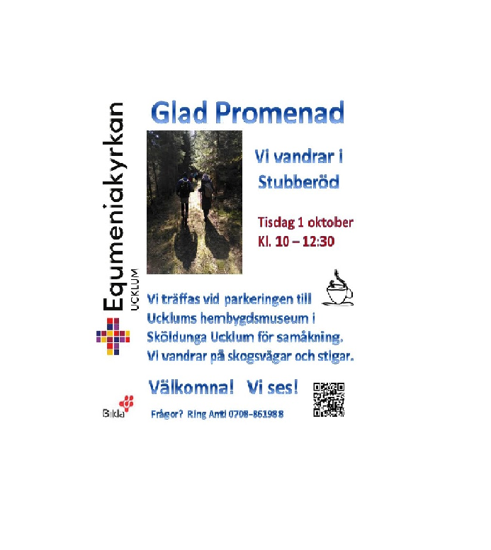 Okategoriserade Glad promenad tisdag 2024-10-01 kl 10:00 Publicerat 29 september, 2024 Välkomna! Dela