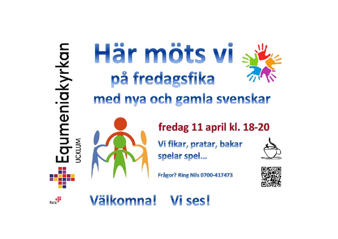 Okategoriserade Här Möts Vi på fredagsfika 2025-04-11 kl 18:00 Publicerat 6 april, 2025 Välkomna! Dela