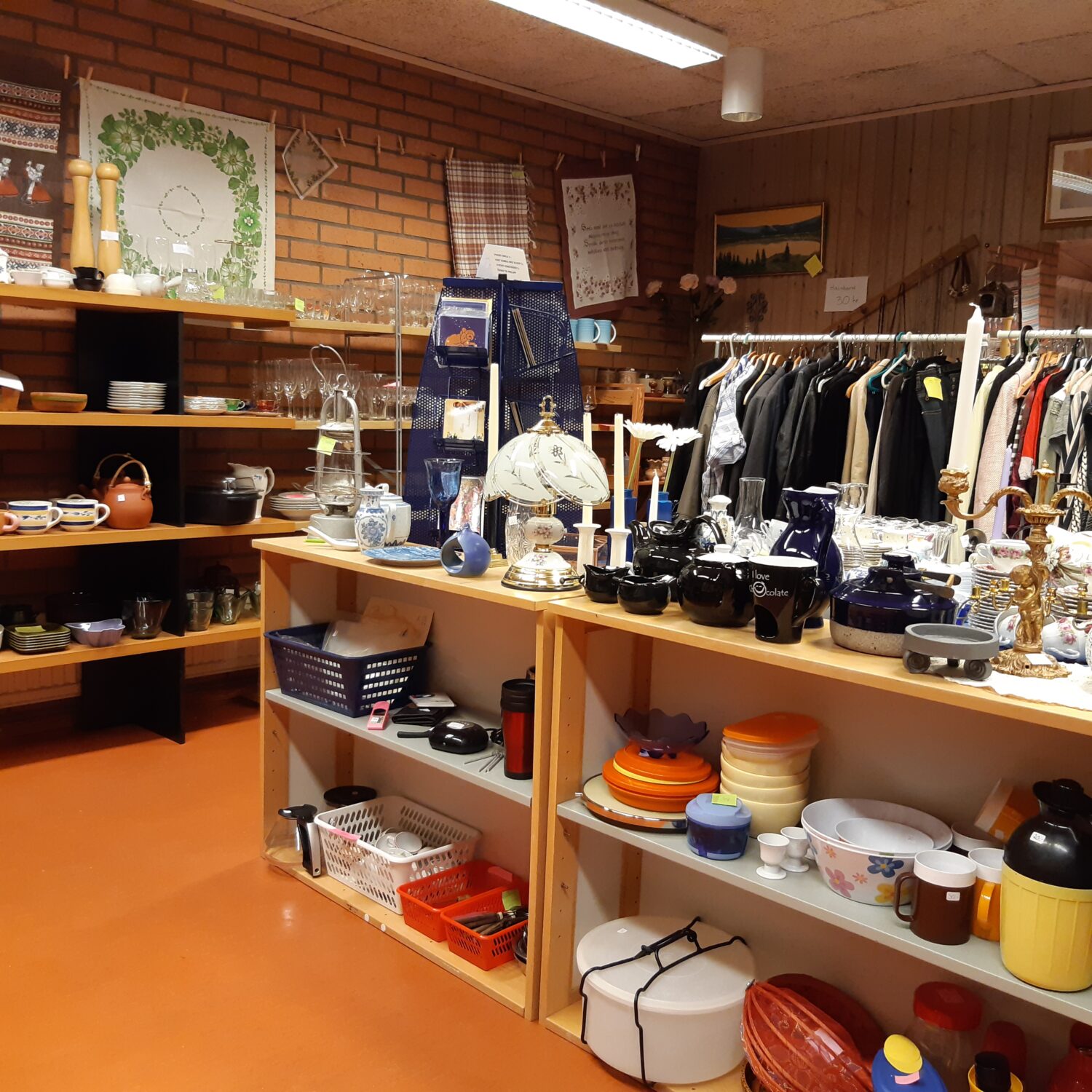 Mycket barn- och tonårskläder. Herr- och damkläder. Skor. Porslin, glas och smycken. Tavlor, prydnadssaker, gardiner, dukar, lakan, inlines mm.